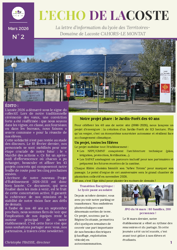 - Comprendre nos engagements : Plongez au cœur de nos projets structurants (Projet d'Établissement 2026-2031, transition énergétique, label Cant’Occ).